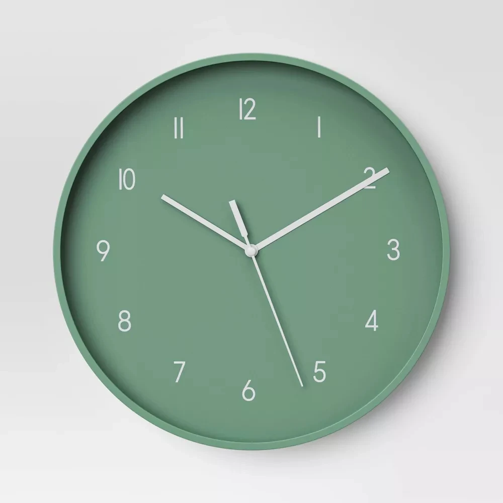Uplift your decor with the 12″ Wall Clock Green. Designed with sleek borders, this clock adds a modern and artistic touch to any space. The green frame contrasts beautifully with the green clock face, ensuring clear visibility of the analog display. Crafted from durable materials, it’s both stylish and long-lasting. Perfect for living rooms, offices or bedrooms, this clock effortlessly enhances your decor while keeping you on time.
