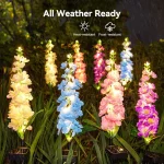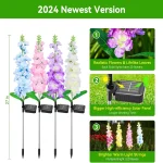 【Upgraded Solar Flower Lights Outdoor & 36 Bright LED Beads】The set features 4 solar delphinium flower lights in blue, pink, off-white, and purple, boasting realistic solar flowers. Each solar lights outdoor has 9 LED beads; 4 pack solar flower lights outdoor totally have 36 LED beads