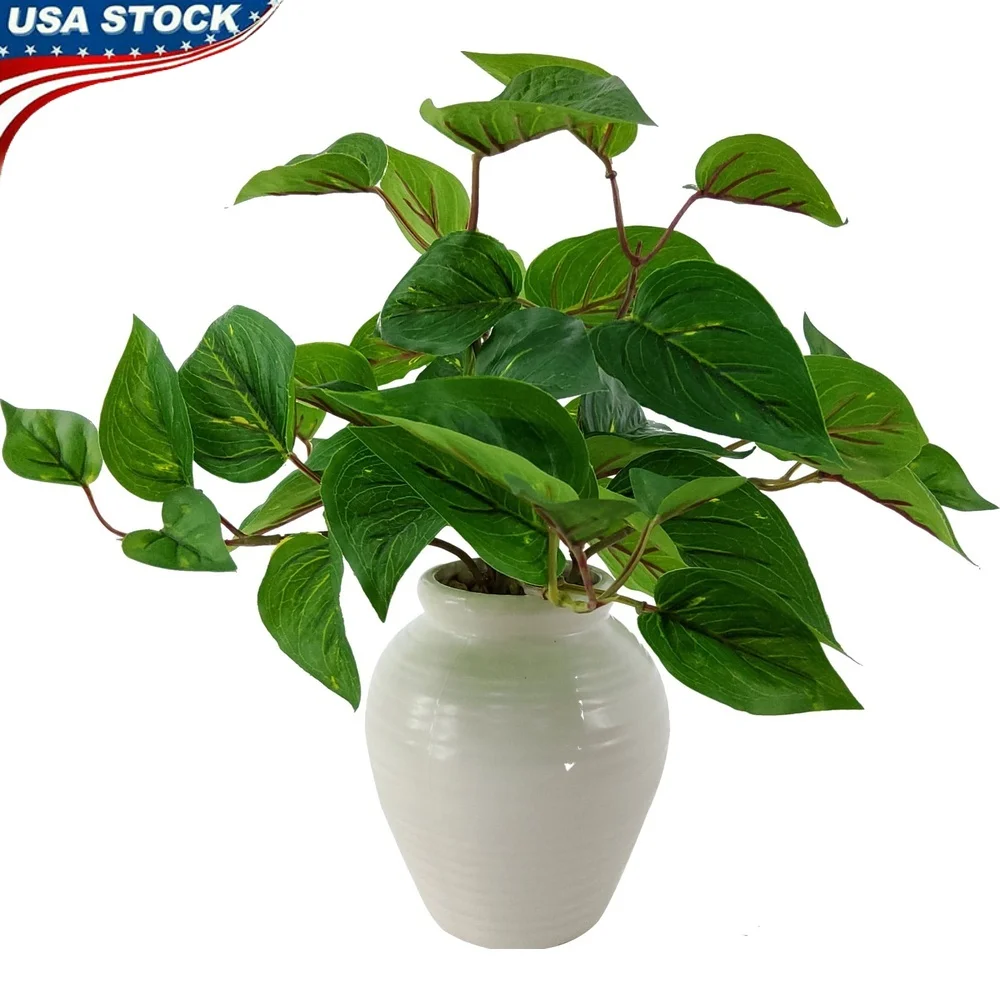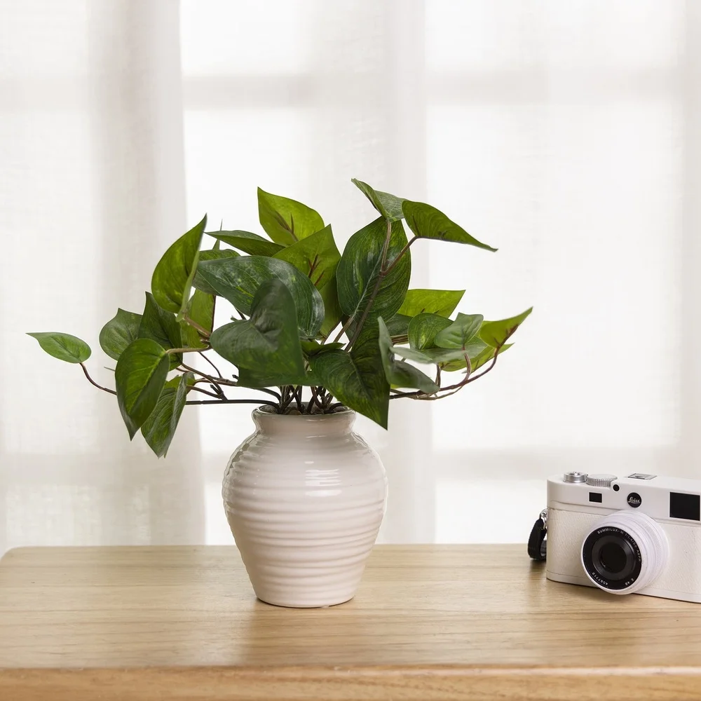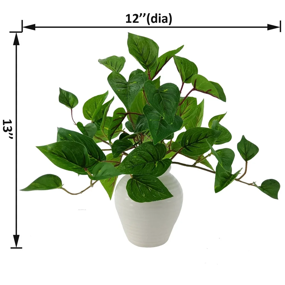 Artificial Golden Pothos Plant in White Ceramic Pot, Lifelike Vibrant Green Leaves Perfect Indoor Decor