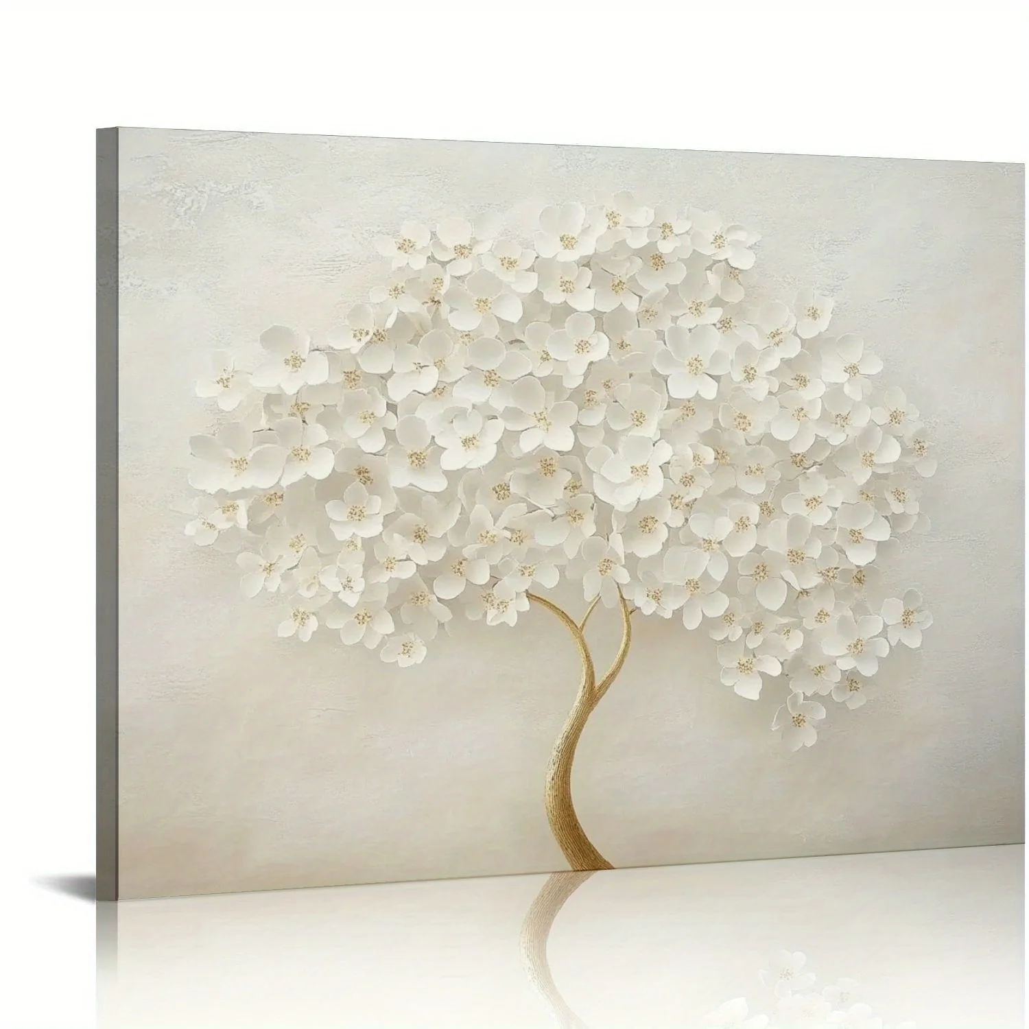 Elegant Scandinavian White Floral Canvas Painting – Simple Modern Art