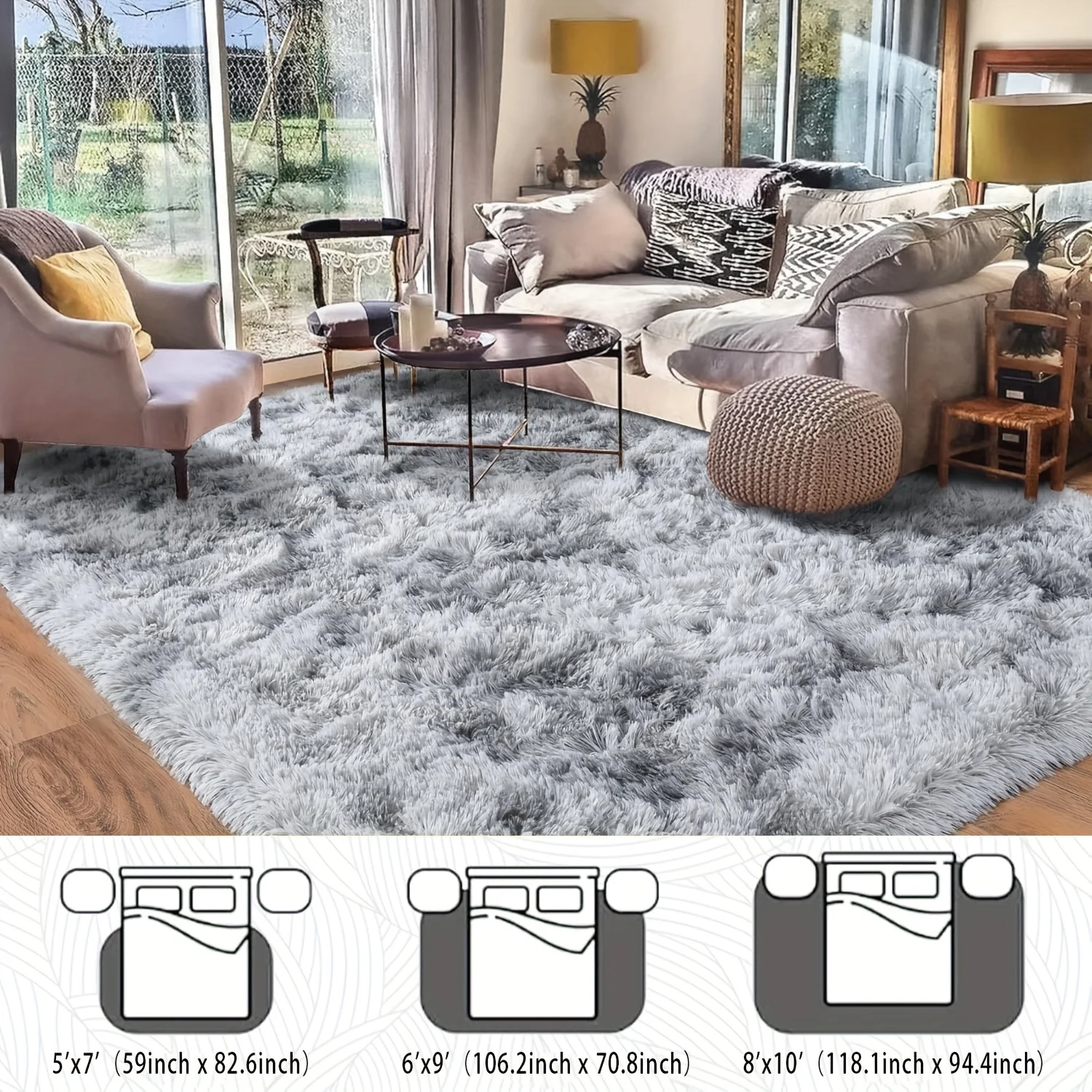 Fluffy tie-dyed gray carpet, suitable for living room, bedroom, upgraded non-slip