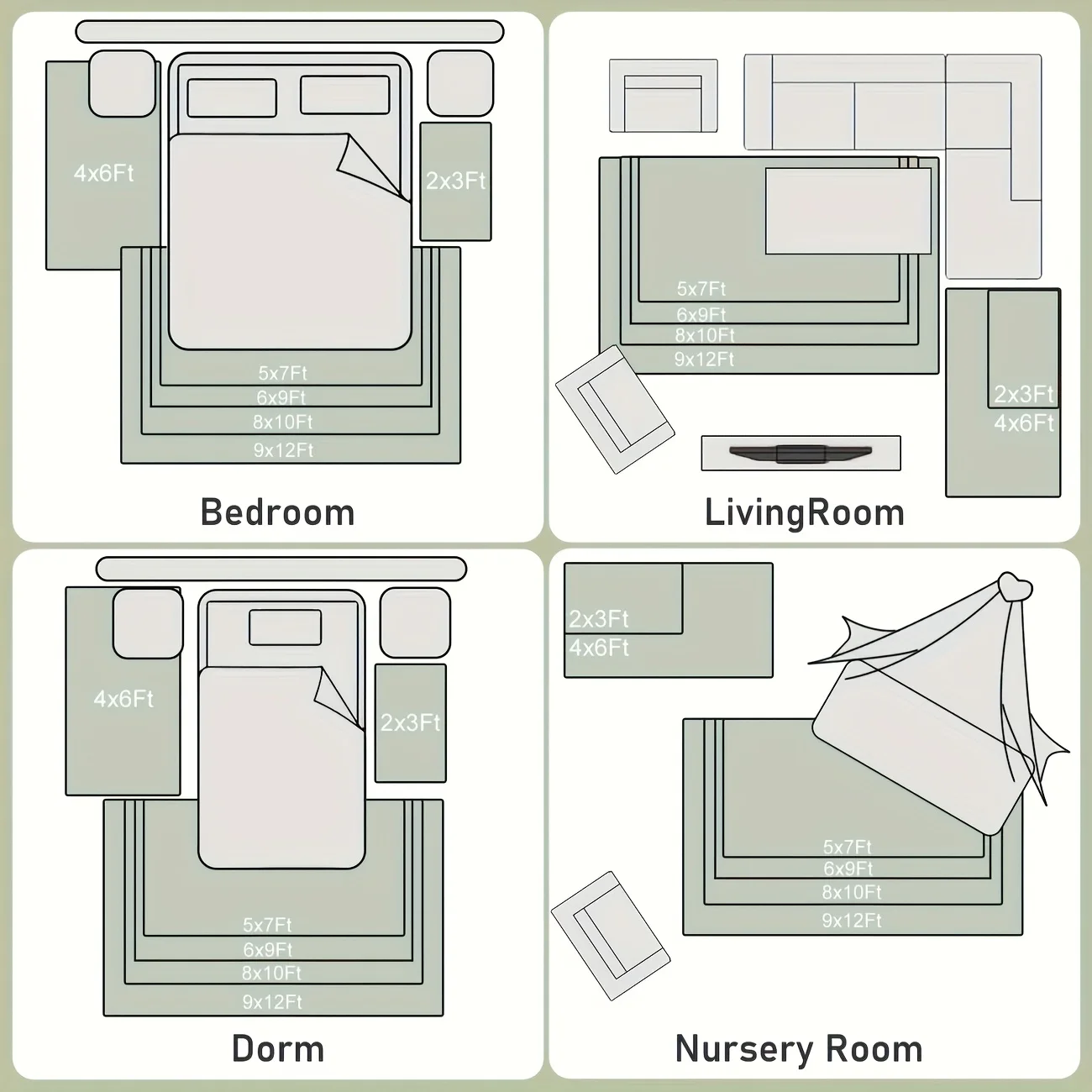 6x9ft 180x270cm, 9x12ft 270x360cm, 5x7ft 150x210cm, 4x6ft 120x180cm