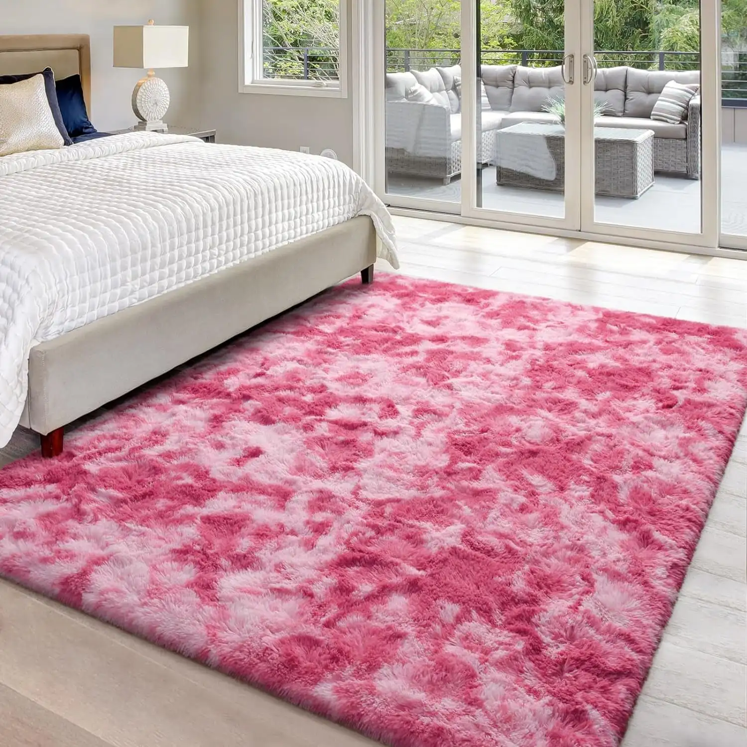 Care Instruction: This shaggy bedroom rug is easy to care, please wipe cleanor hand wash in cold water, and shake it to fluff up the faux fur, choose a site that's well ventilated, lay rug out or hang to dry