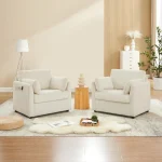 • Ergonomic Support: This accent chair measures 37.75″W x 34″D x 33″H, giving you ample space to stretch out. The comfy cushion backrest offers ergonomic support to your back and shoulder, while the extra 2 pillow offers good support for your arms. No matter reading, playing phone games, or watching TV, you won’t feel uncomfortable