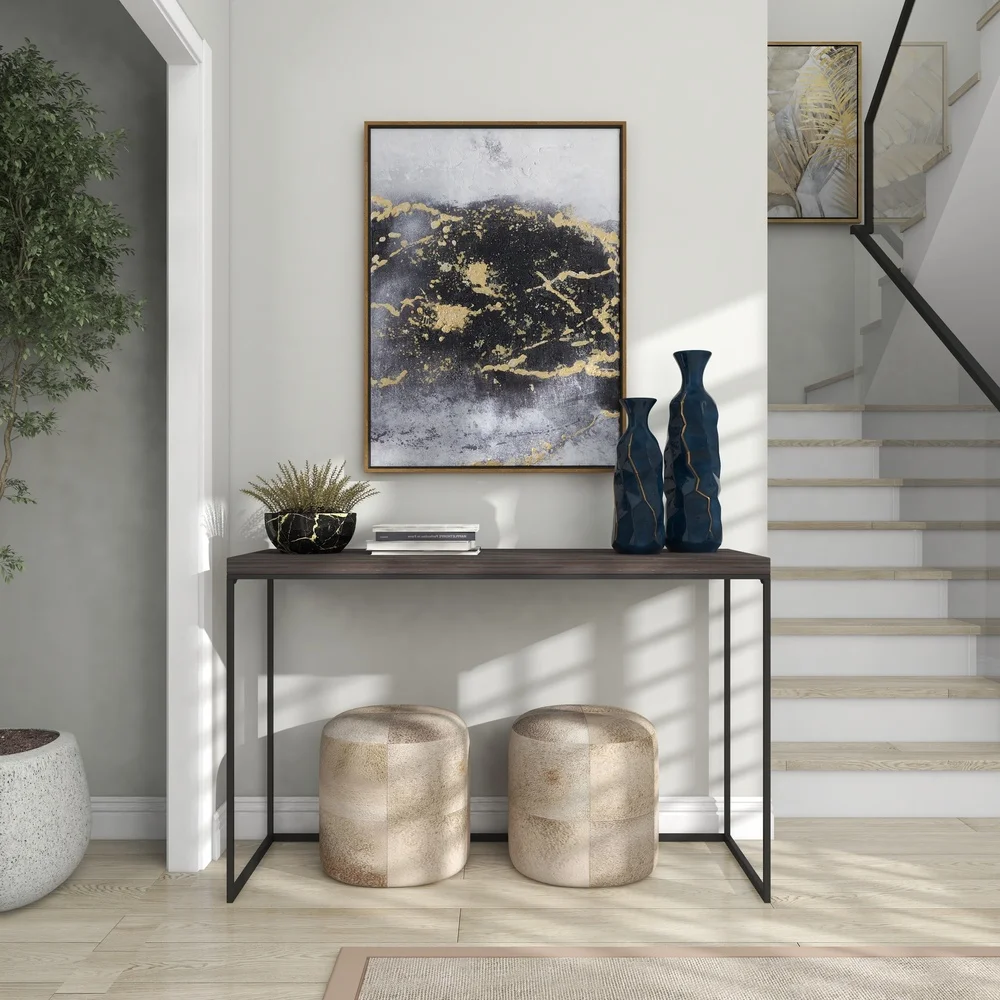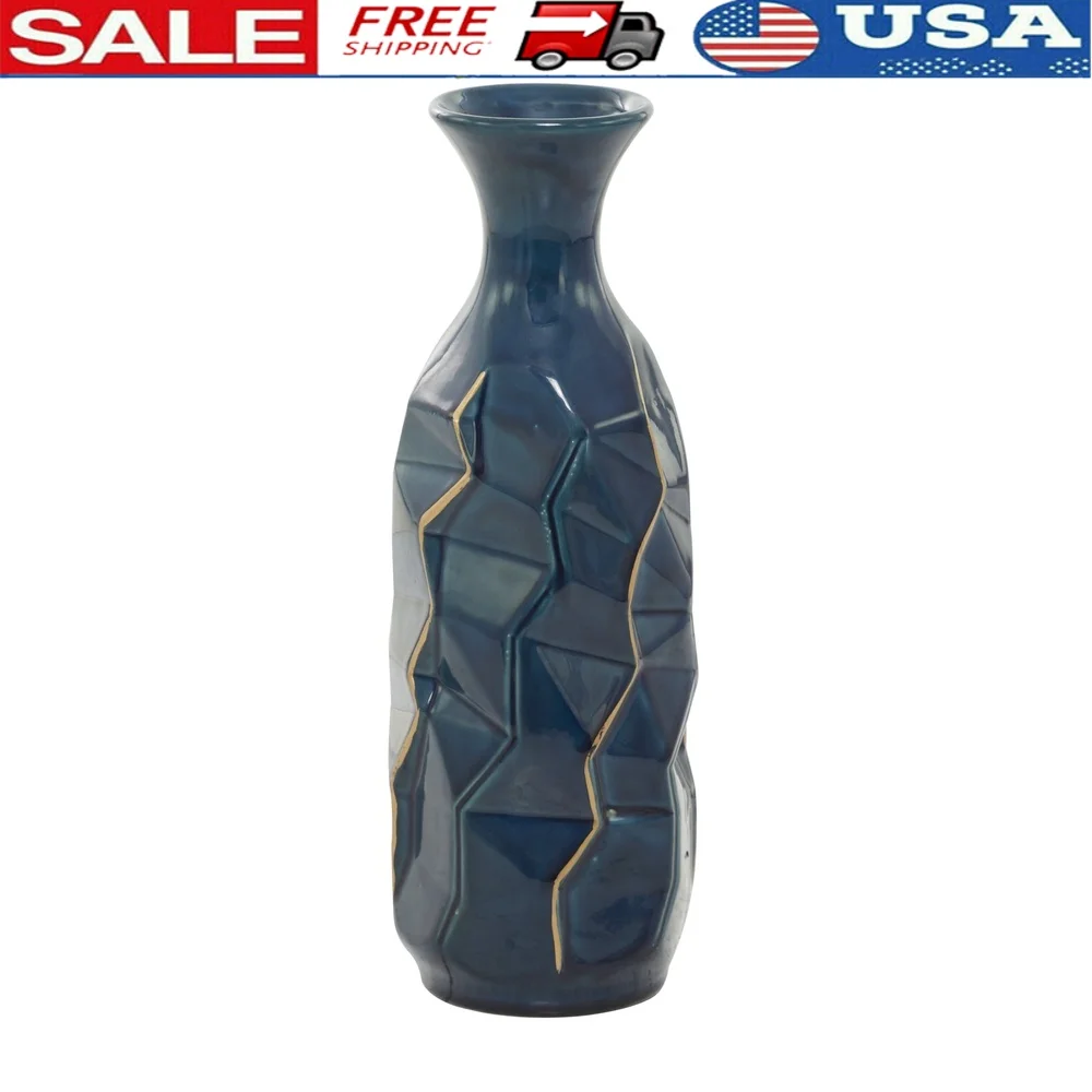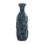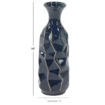 Features: Features a tall abstract-shaped edgy vase with a narrow neck and flannel-shaped mouth, Wipe clean with a dry cloth, Dimensional vase is molded and glazed to form a stunning geometric design with gold painted accents