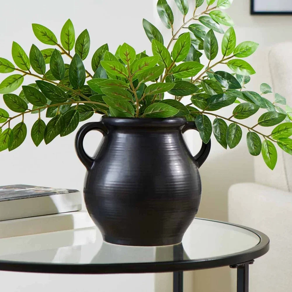 A ribbed texture brings new life to this classic, antique-inspired Ceramic Vase from .  The perfect addition to your home décor, this beautiful vase also makes a great gift for lovers of all things vintage.  Two handles not only add detail but allow for easy carrying as well.  Versatile in every way, this vase can be used in so many ways, including holding fresh or faux flowers, kitchen or office supplies, knitting tools, or plants—the style possibilities are endless.